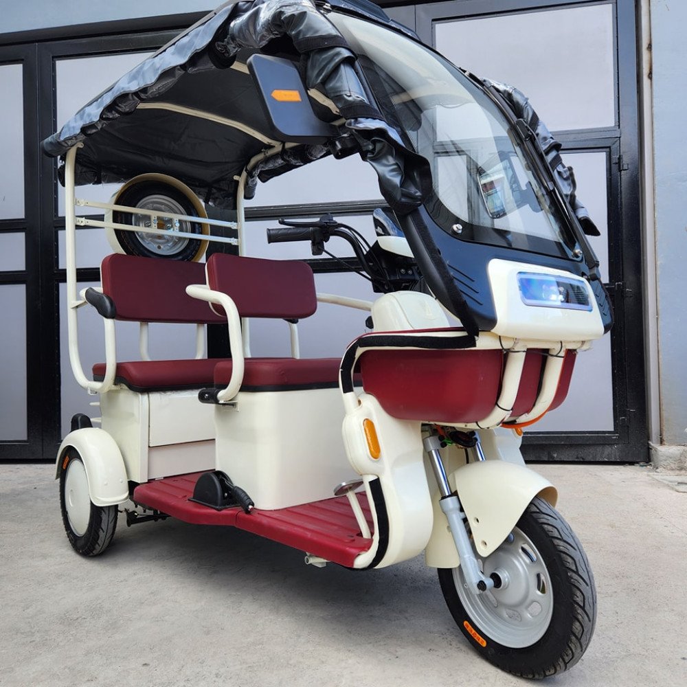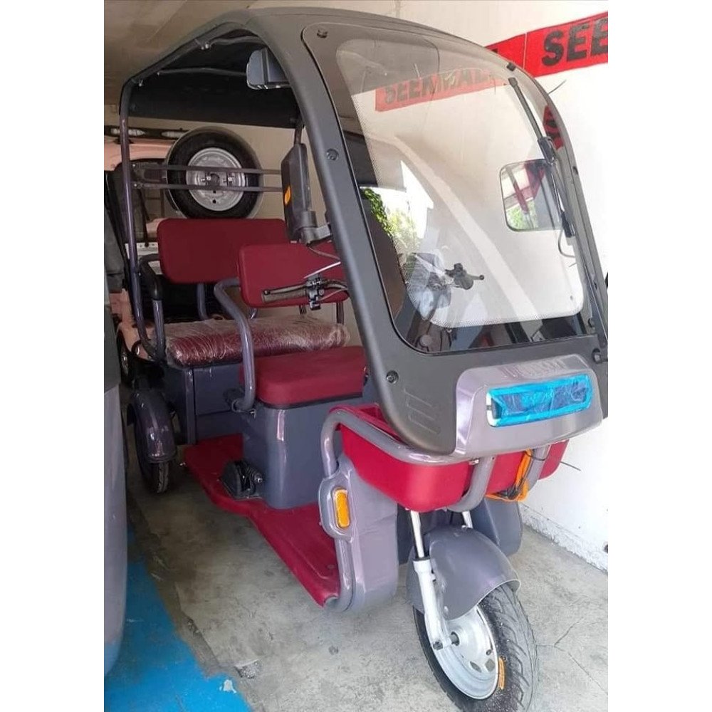 This Q1 Electric Tricycle features a sturdy frame, weather-protective roof, and comfortable seating for passengers. Powered by a reliable electric motor, it offers smooth, eco-friendly transport for daily commuting, family rides, and short-distance deliveries.